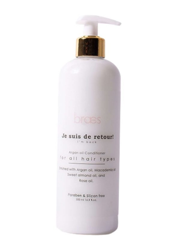 Argan oil, macademia oil, sweet almond oil, rose oil, and natural essential oils, cetrimonium chloride, cetylstearyl alcohol and preservatives.